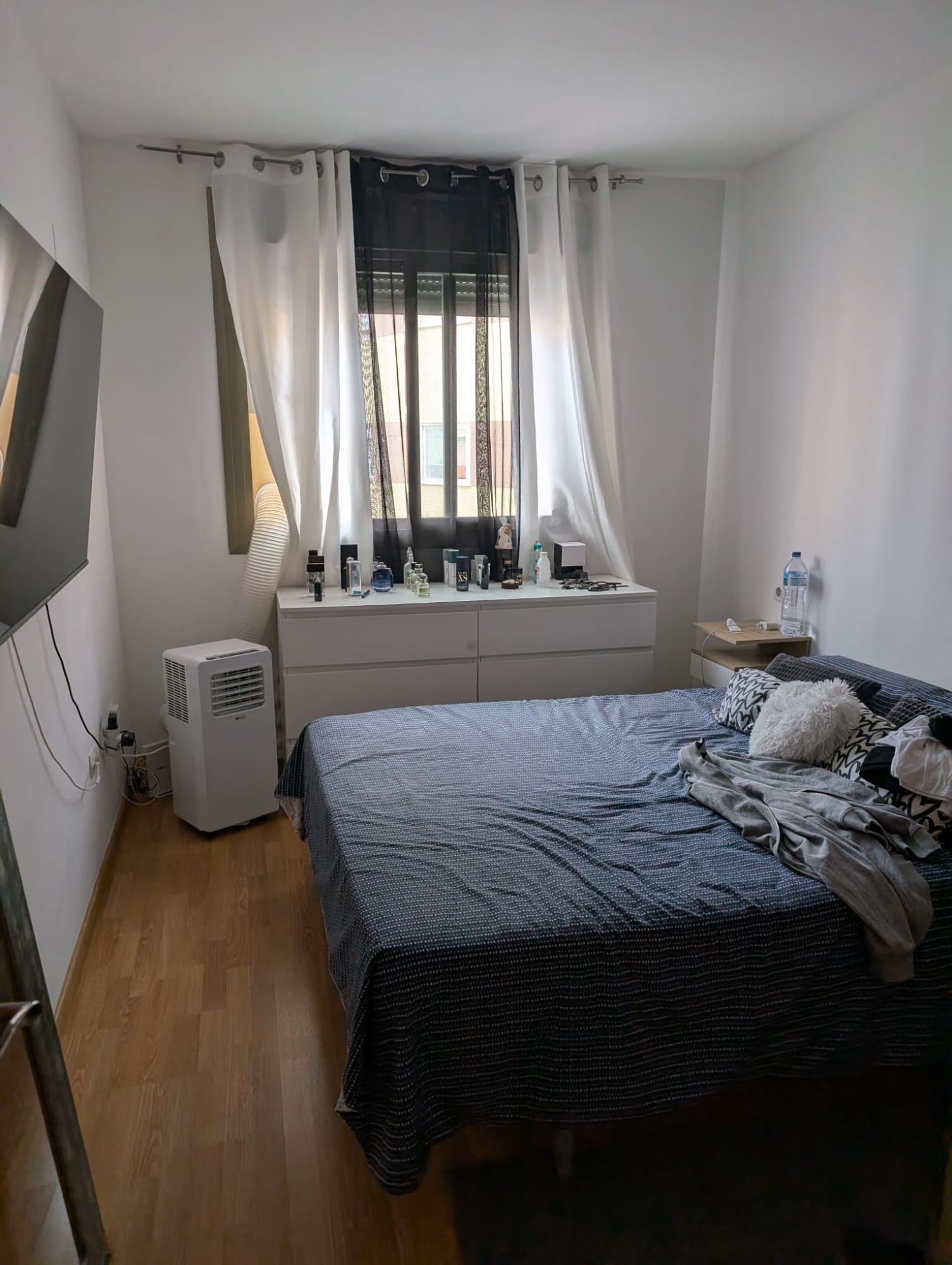 1 dormitorio con armario empotrado, un cuarto de baño equipado con ducha.