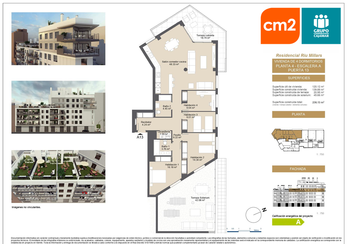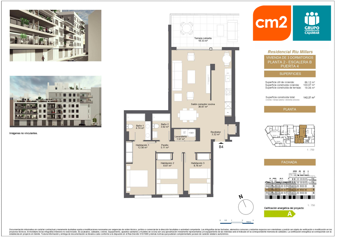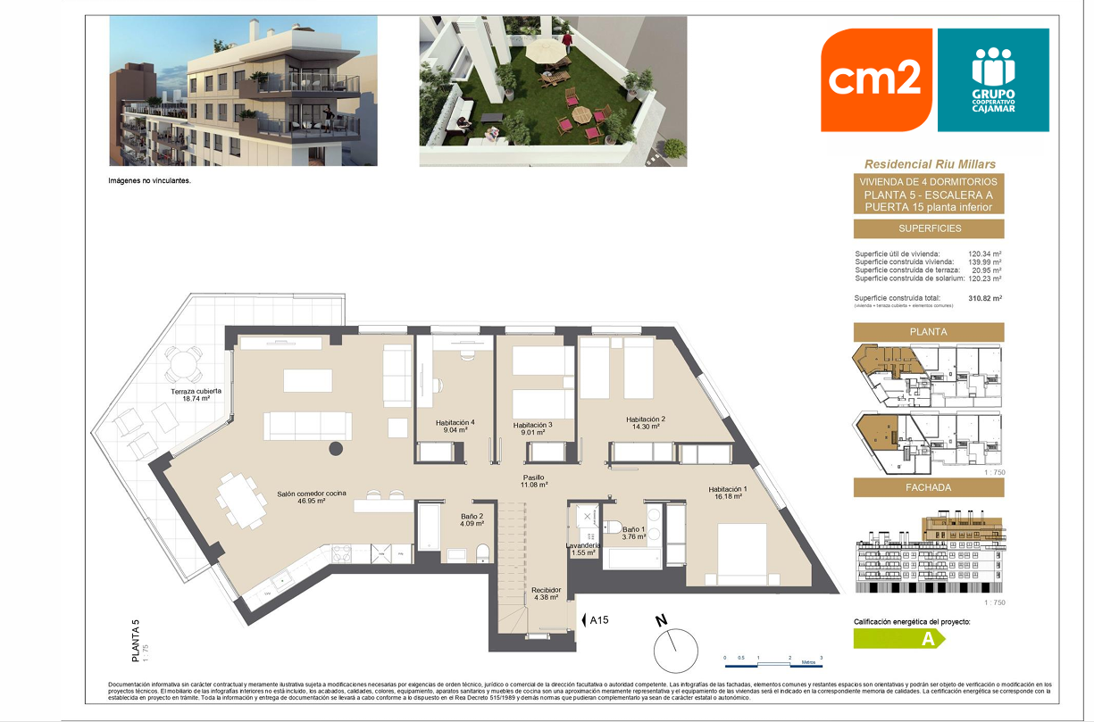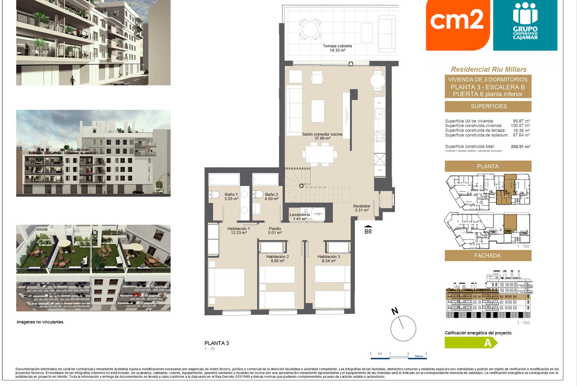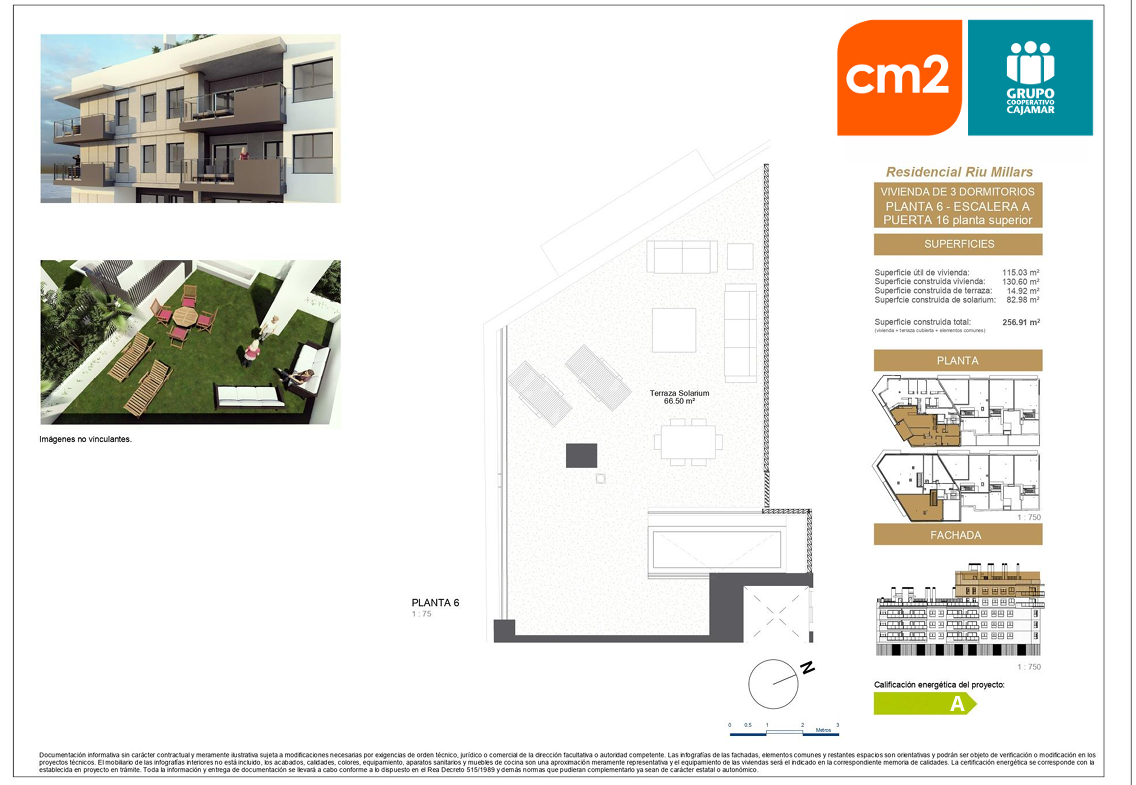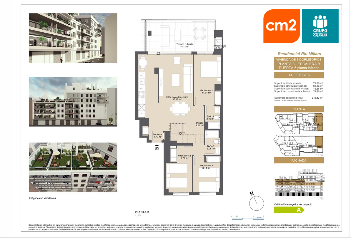 Presta especial cuidado con la eficiencia energética, ( certificado energético A) Su diseño incluye espacios amplios, grandes terrazas y ventanales que iluminan las estancias.