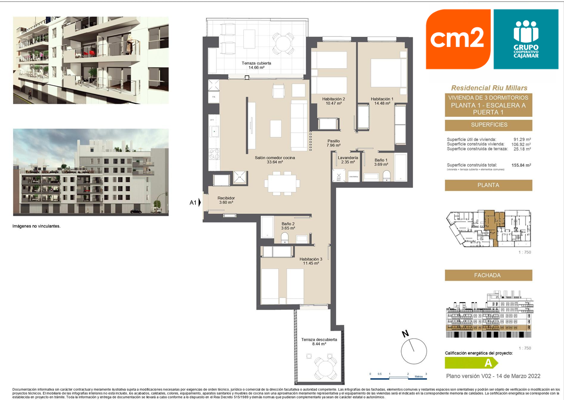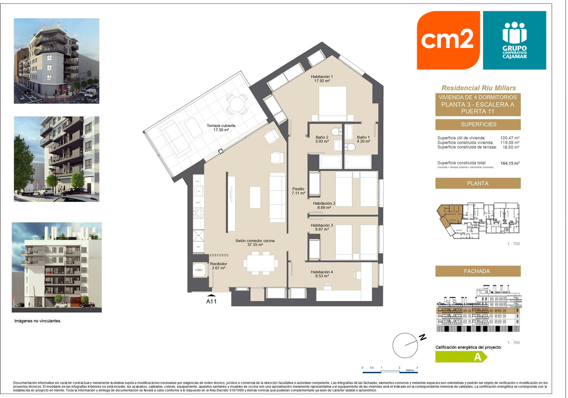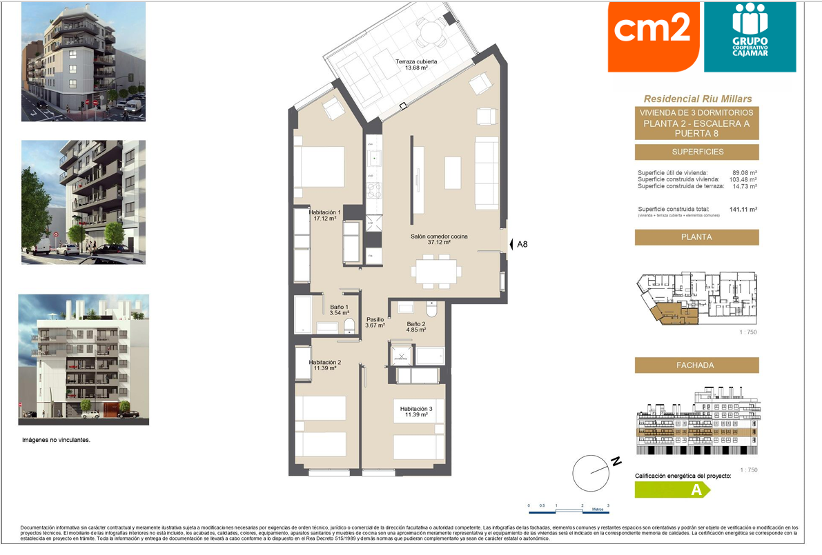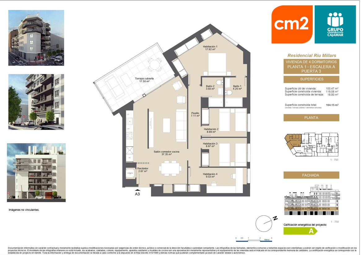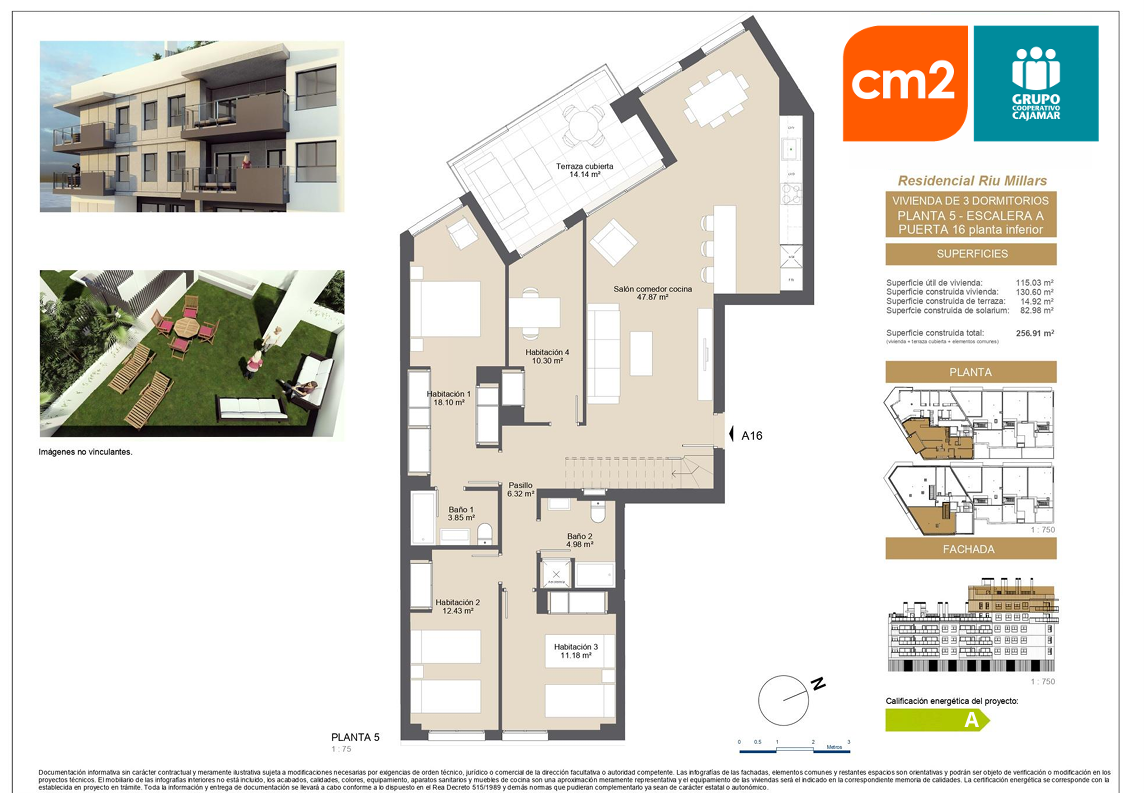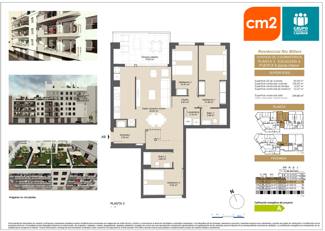 Presta especial cuidado con la eficiencia energética, ( certificado energético A) Su diseño incluye espacios amplios, grandes terrazas y ventanales que iluminan las estancias.