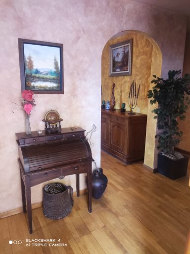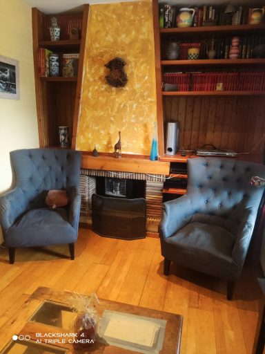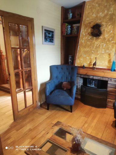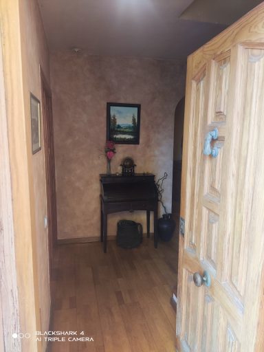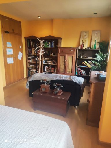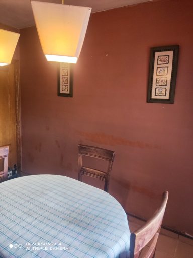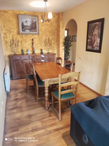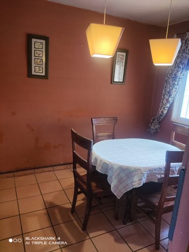 1ª planta; comedor con chimenea, cocina independiente con ventanas, habitación doble, cuarto de baño, habitación destinada a sala de estar.