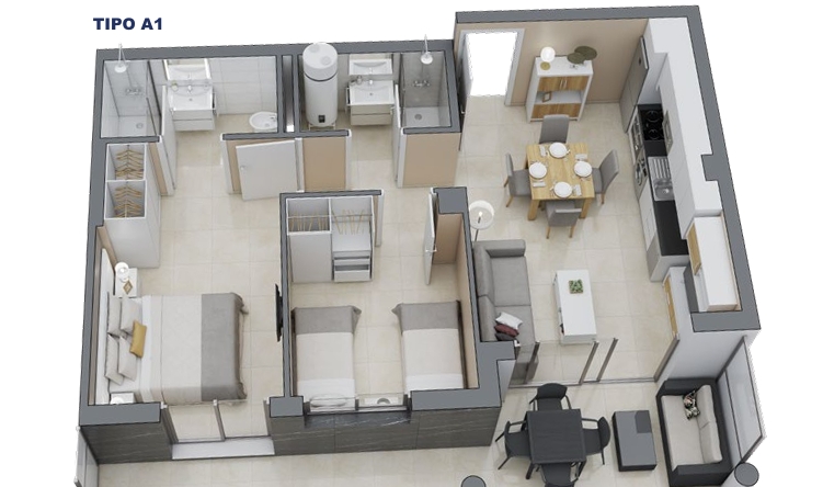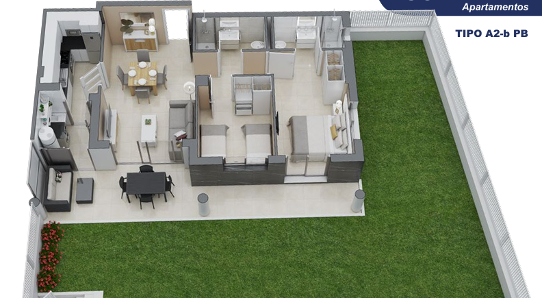 Tienen 2 o 3 habitaciones con 2 baños, cocina, lavadero (según tipología), salón-comedor, terraza y zona ajardinada en plantas bajas desde 30,90 m² hasta 78,93 m².
